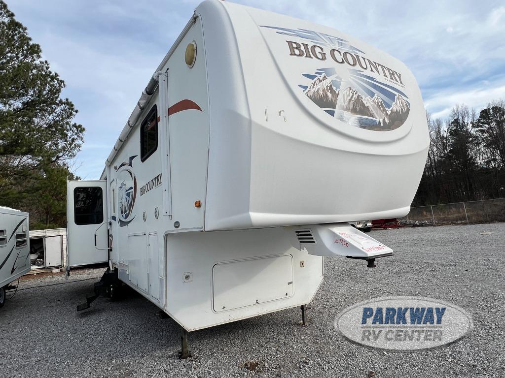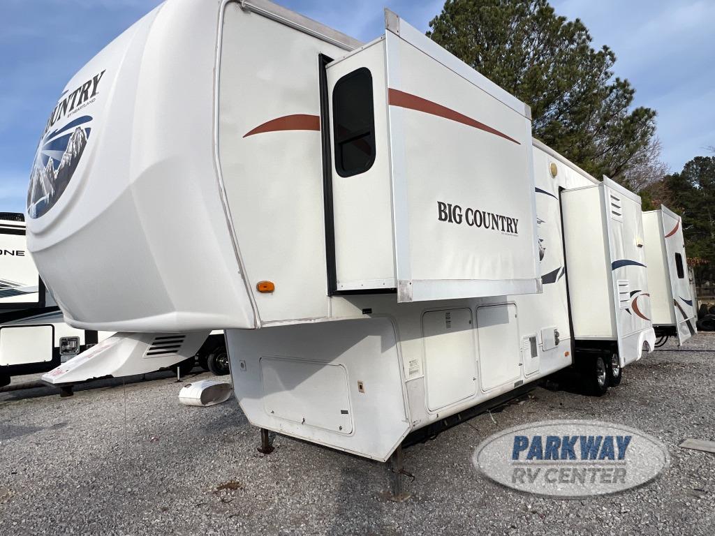Quad Slide Big Country FW w/Rear Living Area, 2 Chairs, Overhead Cabinets, Work Station w/Overhead & Ent. Center Slide w/Opt. Fireplace, Hide-A-Bed Sofa & Dining Table & Chairs Slideout, L-Shaped Counter w/Dbl. Kitchen Sink & Overhead, 3 Burner Range & Refrig. Slide, Overhead Cabinet, Pantry, Closet, Angle Shower, Private Toilet Area, Linen Cabinet/Stackable Washer/Dryer Prep, Sink, King Bed Slideout w/Storage, Drawers w/Overhead, Ent. Center, Walk-In Closet and Much More!