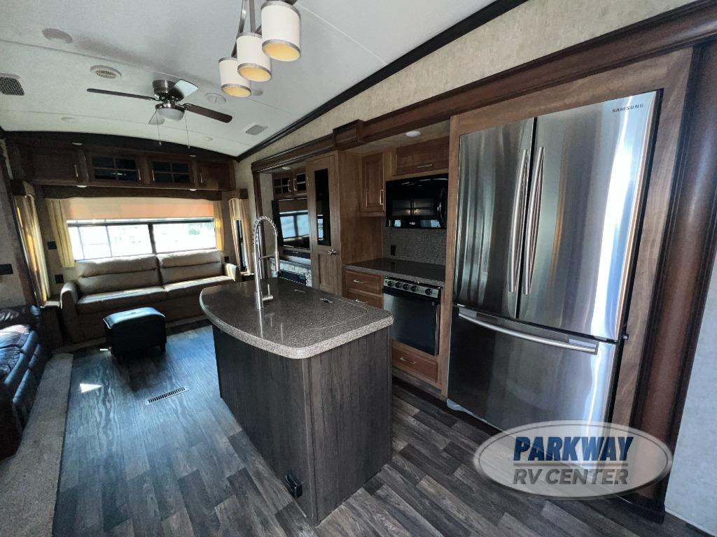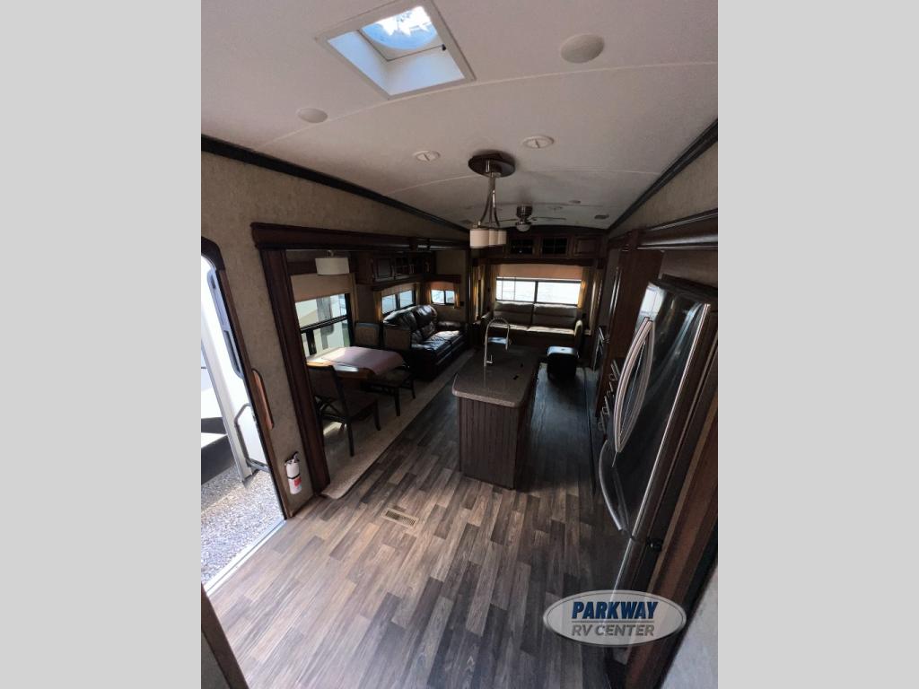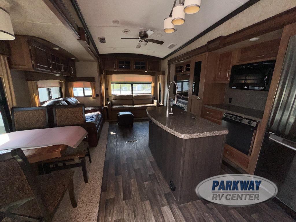 This Keystone Montana fifth wheel features loads of interior space with three large slide outs, a rear living room layout, and convenient kitchen island. This model is identical to model 3720RL.