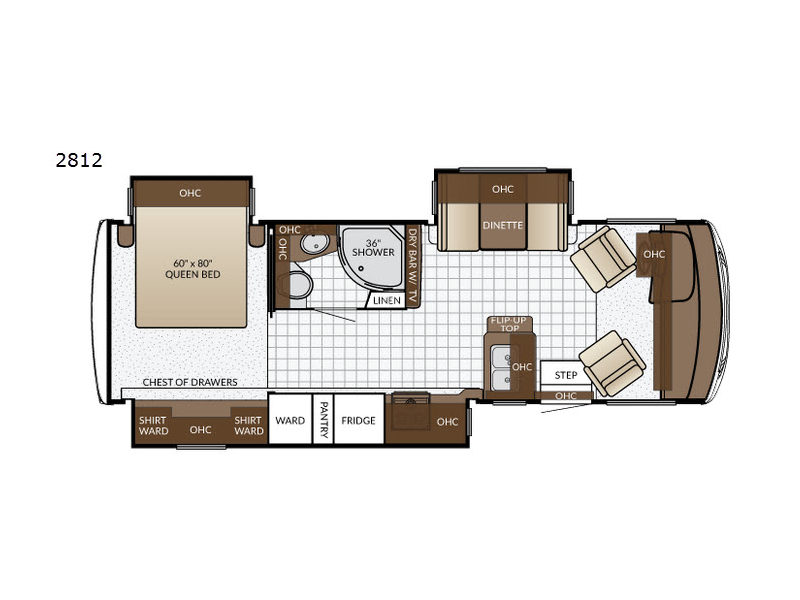 Travel in style and comfort in this 2812 Bay Star Sport motor home by Newmar. This model features triple slide outs and sleeping space for four people.