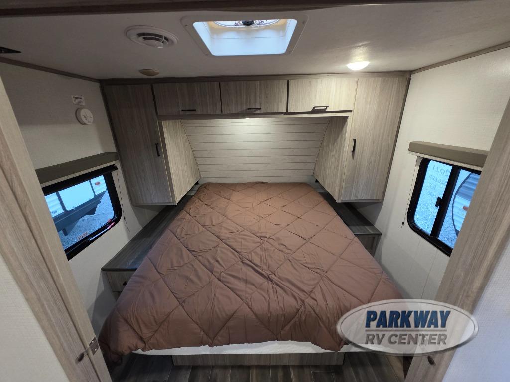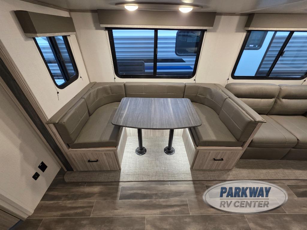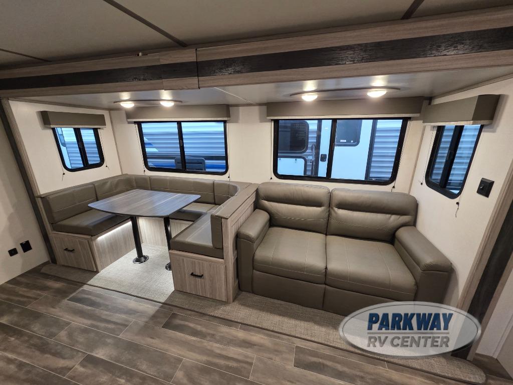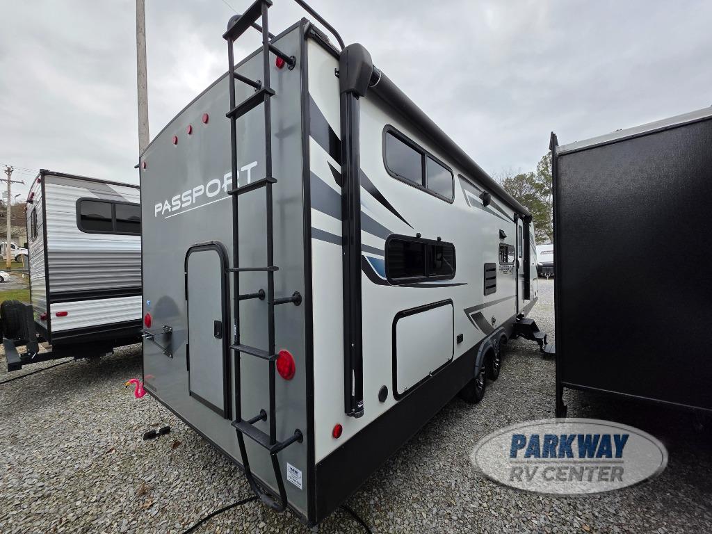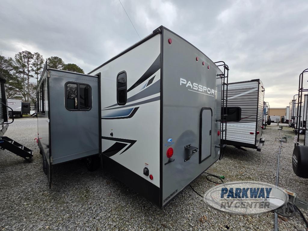 Let your days turn into weeks and your weeks turn into months with this Passport travel trailer! You can keep all of your gear stored effortlessly in the rear cargo door and the front pass-through storage compartment, and the interior also offers some storage space with the bedside wardrobes and large kitchen pantry or utilize this space as a wardrobe. You also have plenty of space to keep your perishable foods from spoiling with the interior 6-cubic foot refrigerator and in the exterior refrigerator in the outside kitchen. The tri-fold sofa sleeper and U-shaped dinette will provide you with some extra sleeping space so that you can invite friends or family to join you, and the full bathroom is going to keep everyone clean. You can also choose to add the optional Pivot furniture in place of the dinette and sofa or optional theater seats.