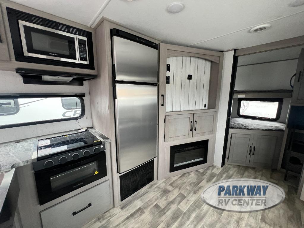 BUNKS! FIREPLACE AND A HIDDEN PANTRY OR A VERY SMALL GUEST ROOMDutchmen Kodiak Ultra-Lite travel trailer 296BHSL highlights: