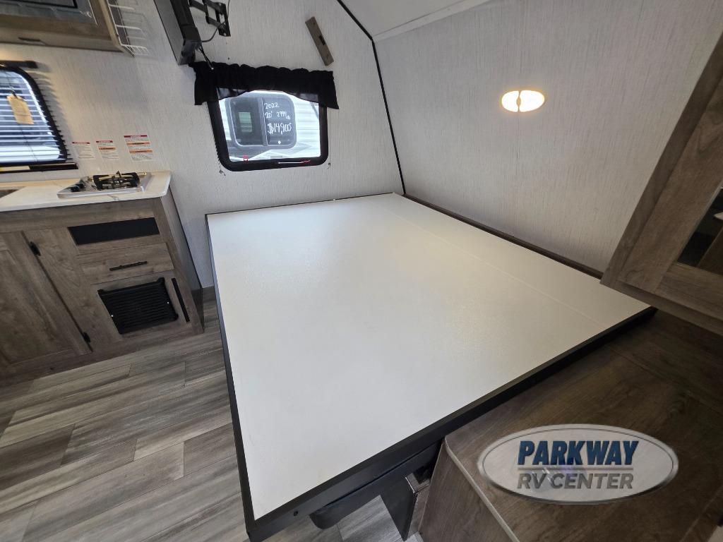 Easy to store and easy to tow, this Pioneer will allow you and your group enough sleeping space for four with the front Murphy queen bed, the double-size bed in the rear next to the full bathroom. You will find storage in the front shirt closet, under the bed, and in overhead cabinets. There is a two-burner cooktop, a microwave and a 6 cu. ft. refrigerator to make meals, plus you can use the outside camp kitchen. And don't forget about the 14' power awning that creates an outdoor living area protected from the elements.