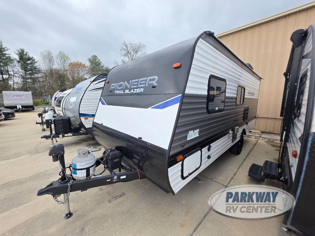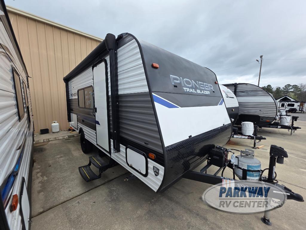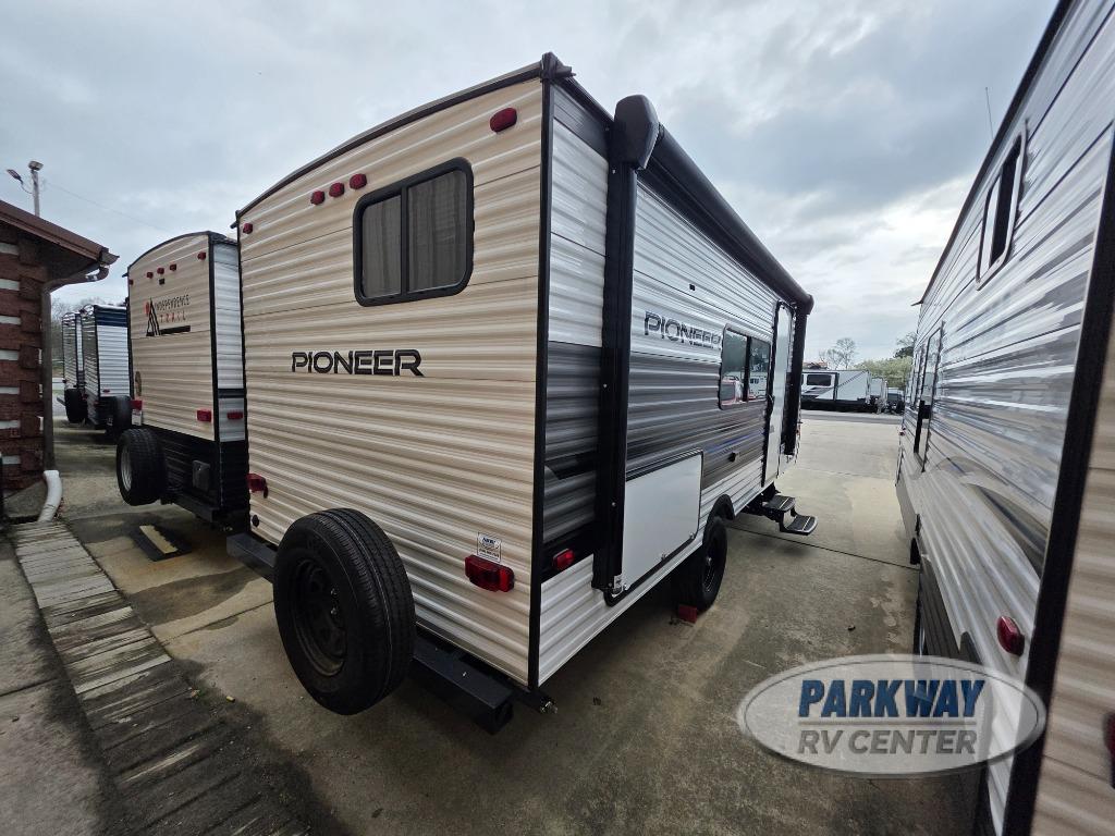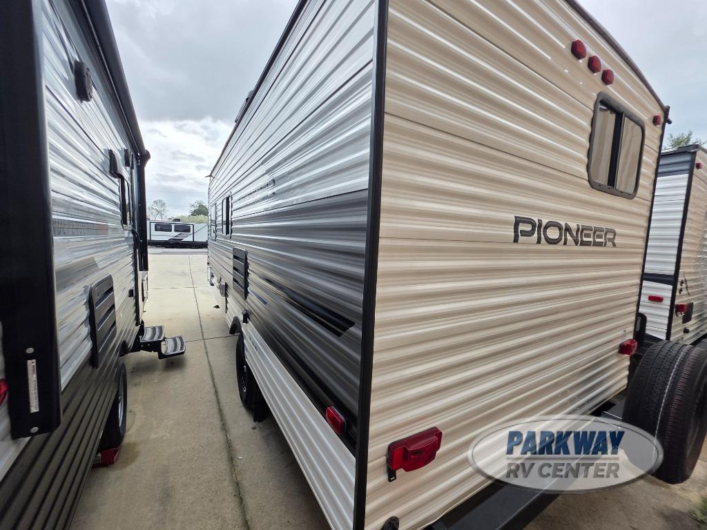 With any Pioneer single axle travel trailers by Heartland, there is 8-foot wide standard construction with aluminum exterior metal, a one-piece, seamless rubber roof, and a diamond plate stone guard to protect against road debris. Inside you will find ball bearing drawer guides, a chalkboard note station, a double bowl stainless steel sink for easy cleanup, and an innerspring mattress. Be a Pioneer, and choose your own journey with all the amenities needed with an easy to tow trailer to all the places you have been wanting to visit!