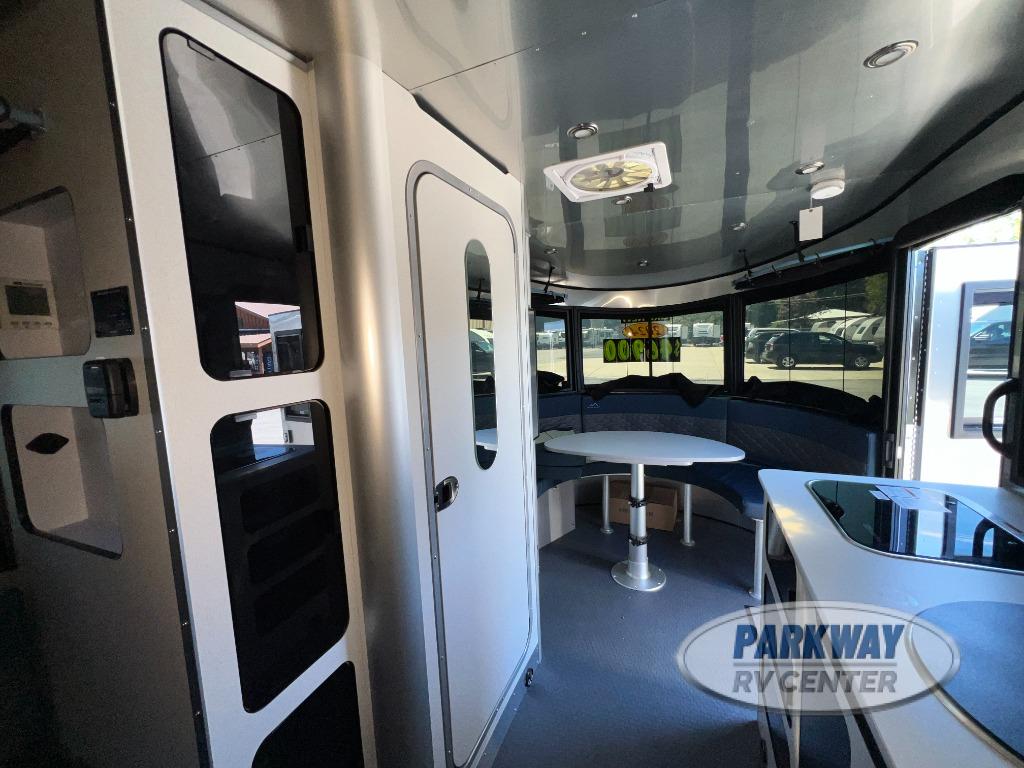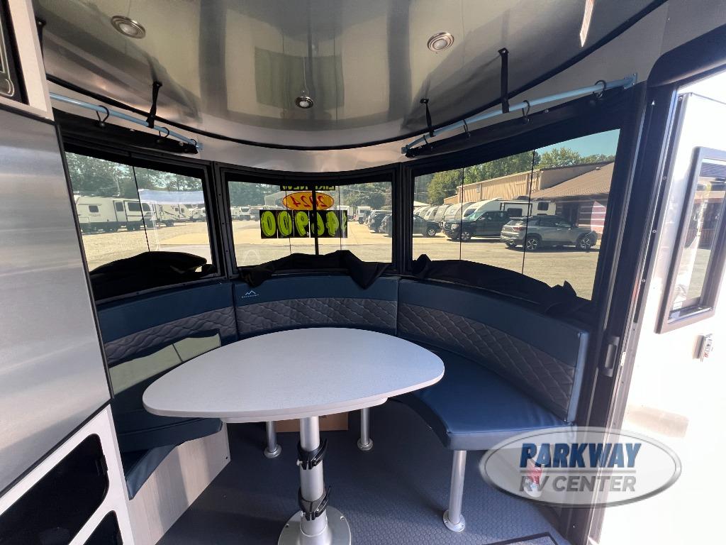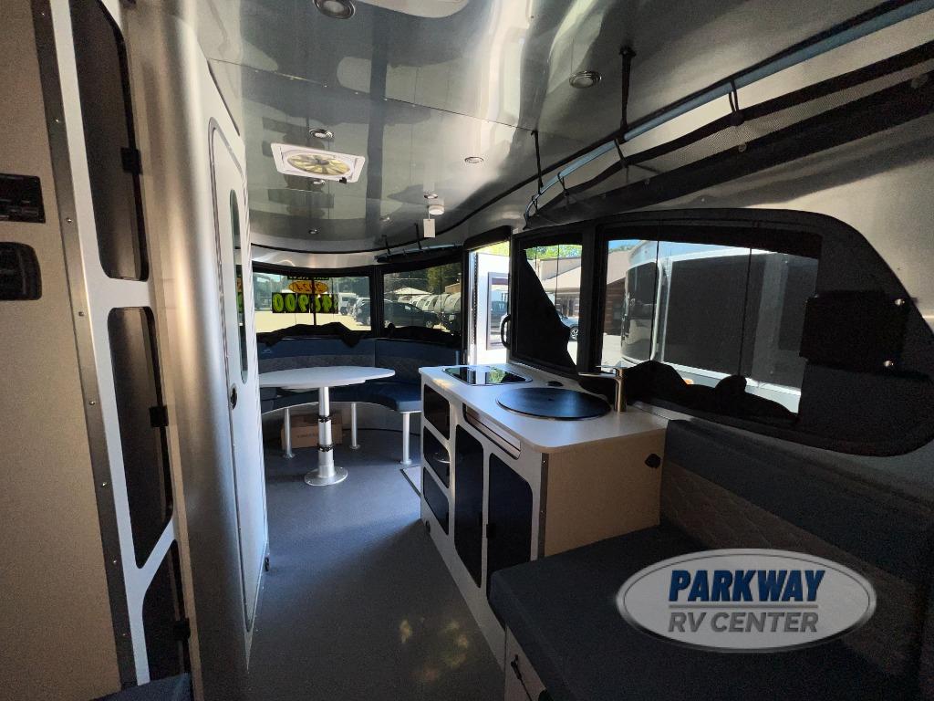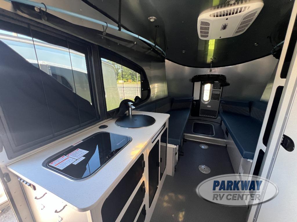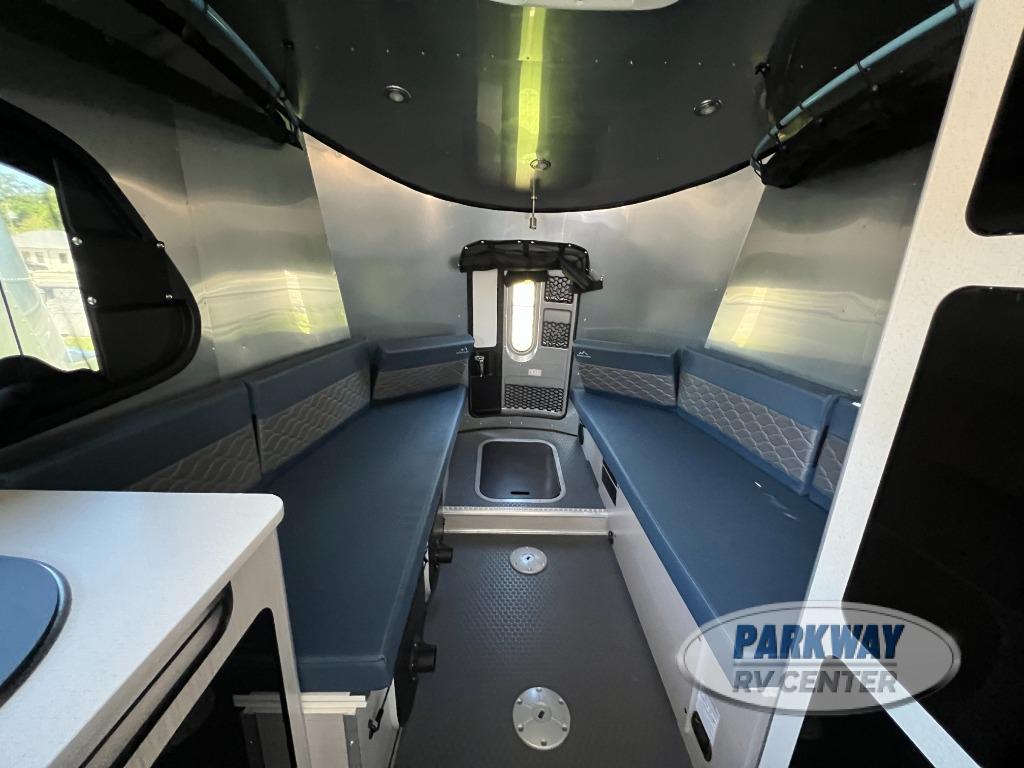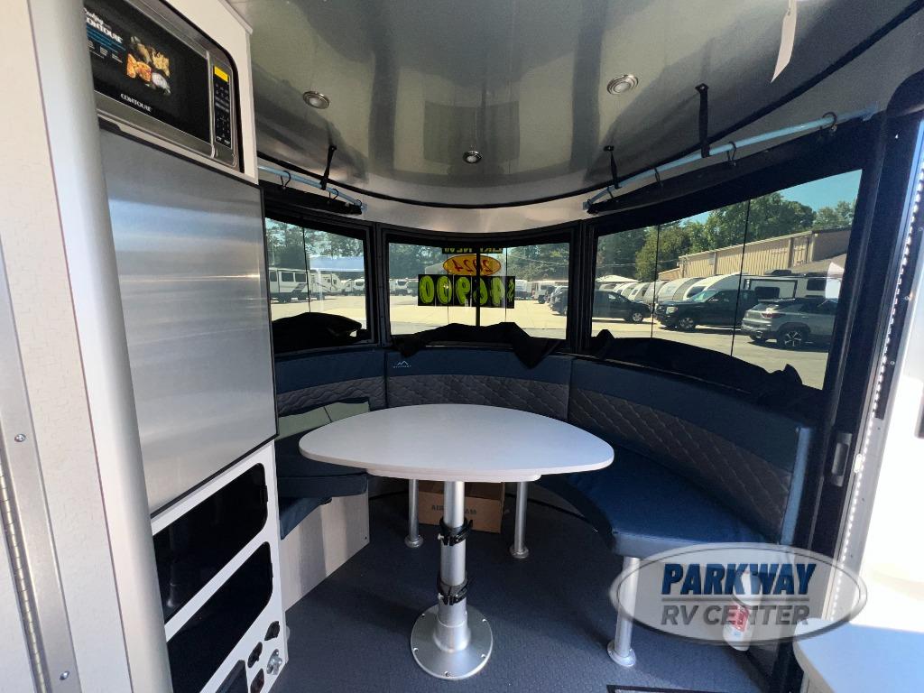 This travel trailer includes the Basecamp X Package that comes with stainless steel front stone guard protection, Goodyear off-road tires, and a 3" lift kit for added ground clearance. You can easily sleep everyone when using both the rear benches and the front U-shaped dinette. The benches provide split sleeping or a half-bed on one side and a full bed that spans the back of the trailer into an 82" x 78" area. There is storage under the cushions for the two removable tables that allow you to dine, work and relax with a place for your cellphones and such. The wet bath comes complete with a shower, sink and toilet so you can rinse off from a day outdoors, the galley kitchen gives the cook a place to make warm meals and store drinks and leftovers. This Basecamp also offers front panoramic windows, a steel entry step, a full-size spare tire, and a rear hatch allowing you to take your snowboards, skis, and paddle boards.